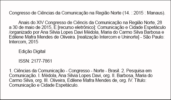 XIV Congresso de Ciências da Comunicação na Região Norte Data: 28 a 30 de maio de 2015 Local: Uninorte - Manaus - AM