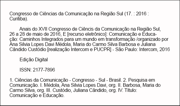 XVII Congresso de Ciências da Comunicação na Região Sul