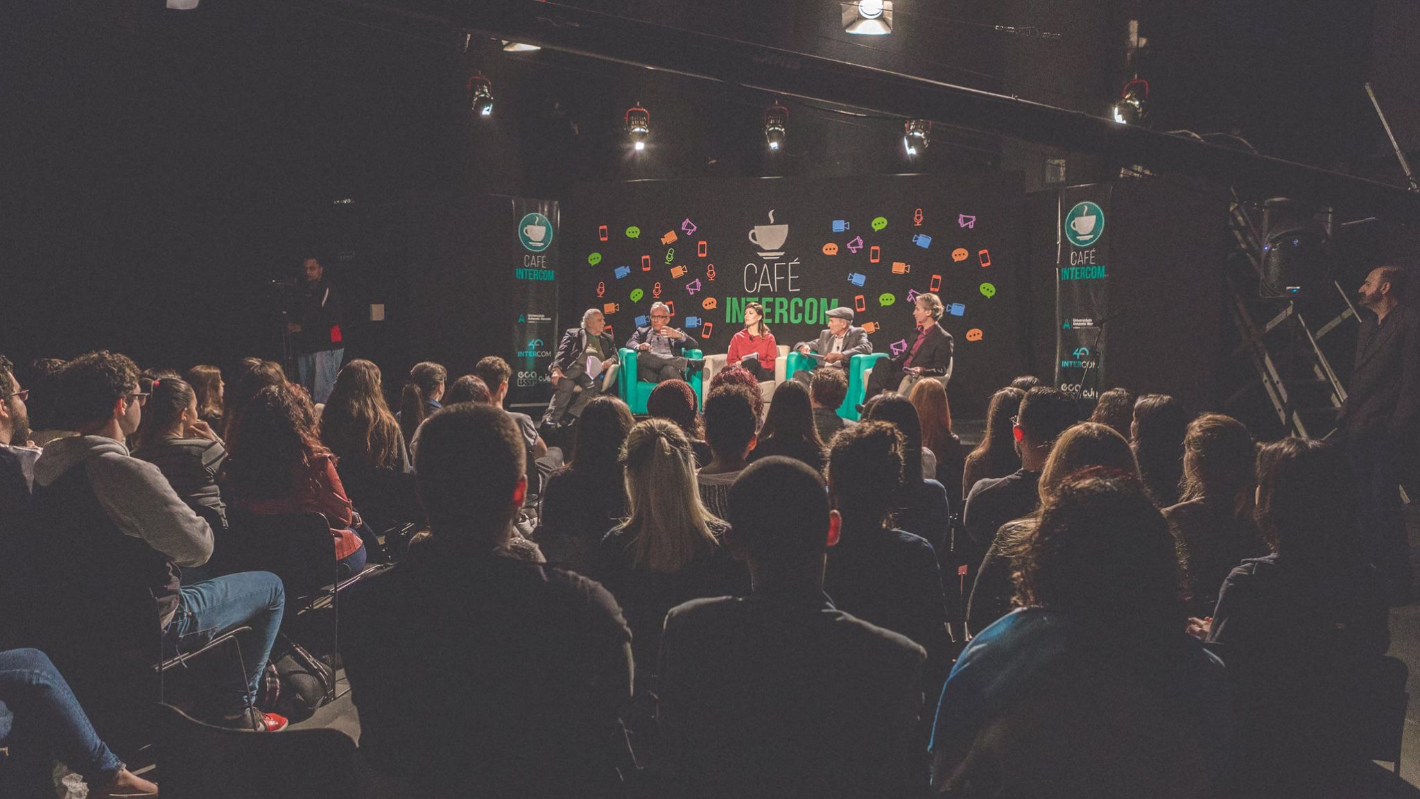 No dia 24 de maio, com o auditório lotado, a Universidade Anhembi Morumbi, em São Paulo, recebeu um Café Intercom especial, que marca a nova fase do evento. Bernardo Kucinski, jornalista, escritor e ex-professor da USP, Daniela Osvald Ramos, professora da Escola de Comunicações e Artes da USP, e Álvaro Pereira Júnior, jornalista da Rede Globo, falaram sobre o tema “COMUNICAÇÃO é a fisionomia ou o âmago da GLOBALIZAÇÃO?” e responderam perguntas do público.